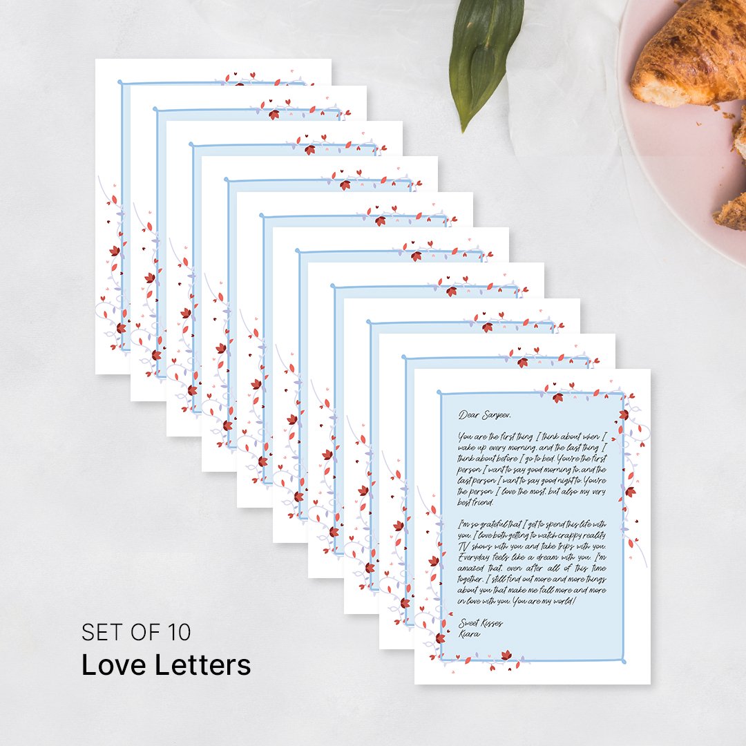 A set of heart felt love letters for him comes in a set of 10 beautiful letters