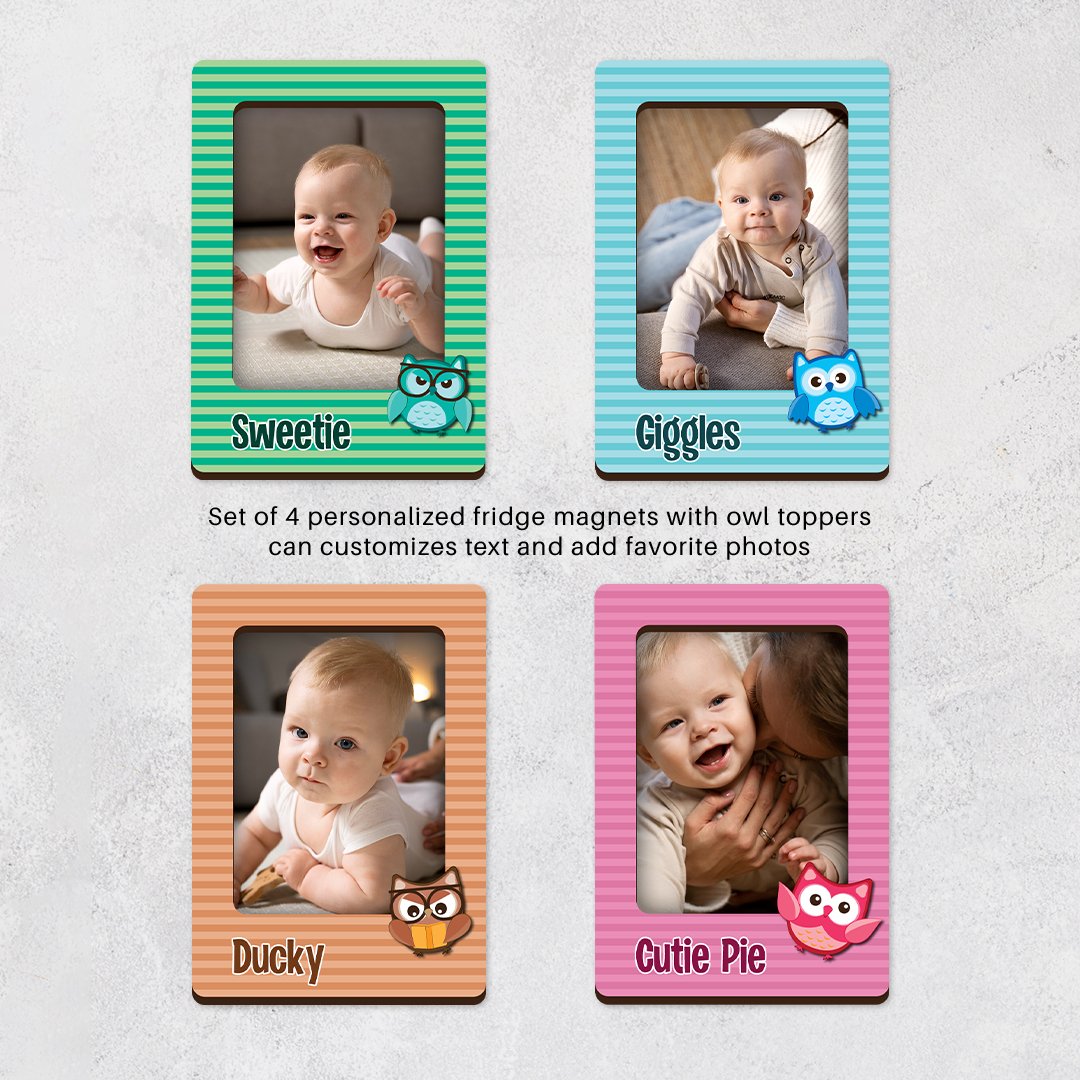 Night Owl 2 wooden customized changeable photo fridge magnets