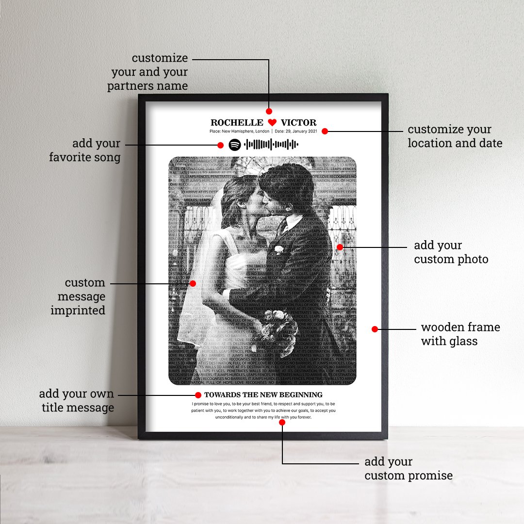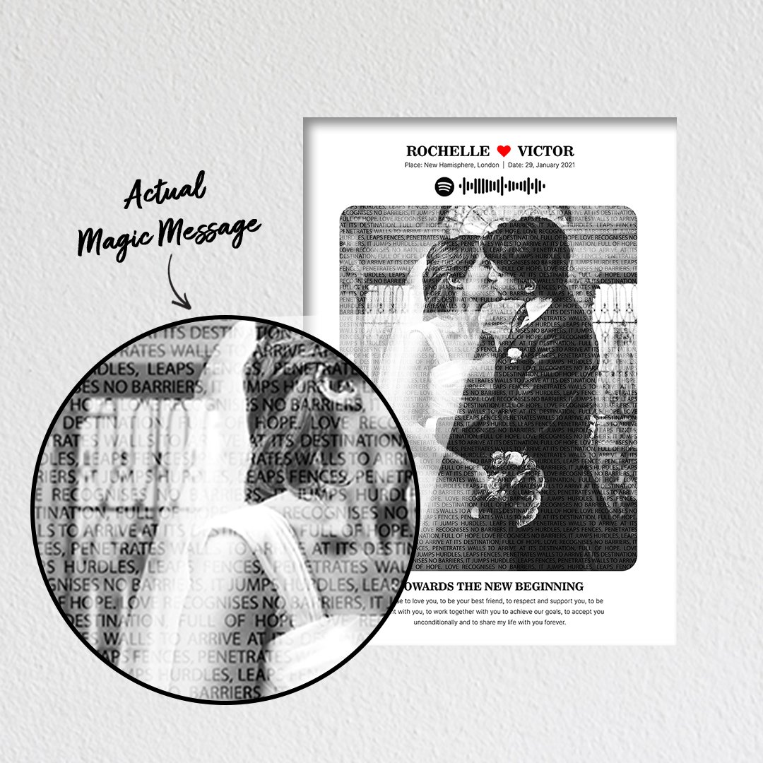 Elegant Magic Text Frame customized with hidden message and spotify music frame