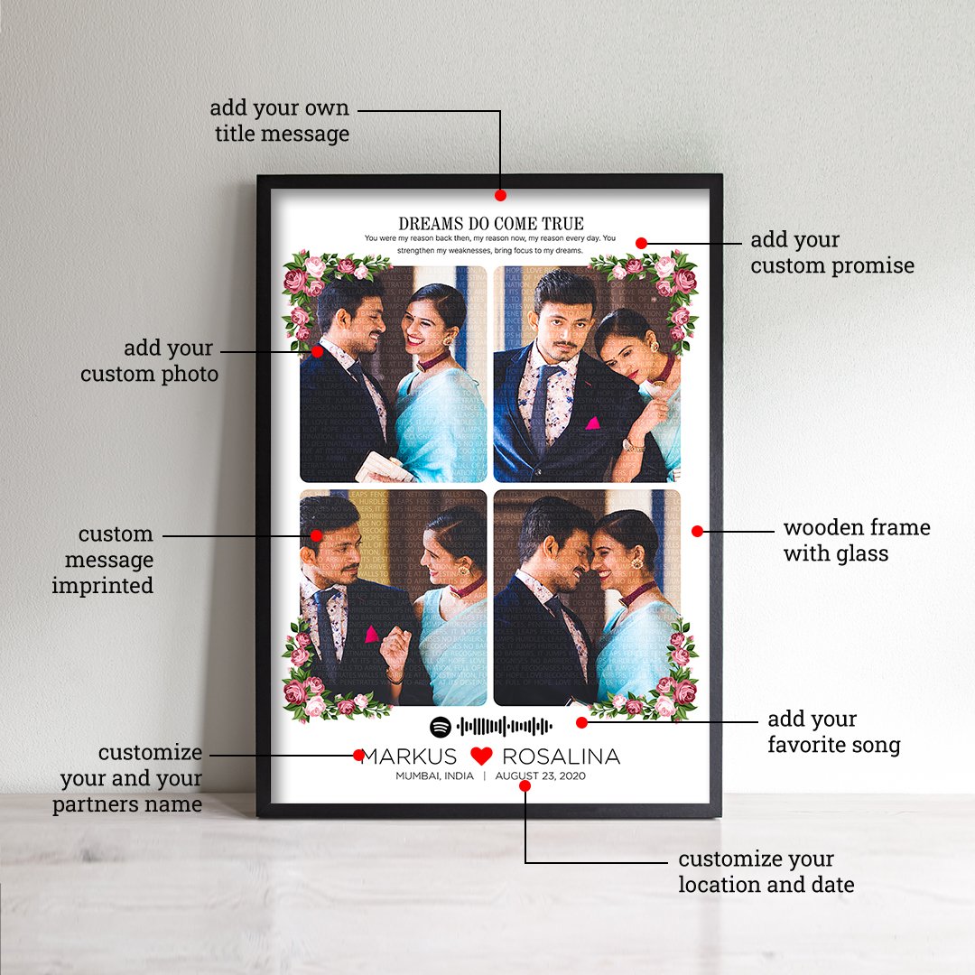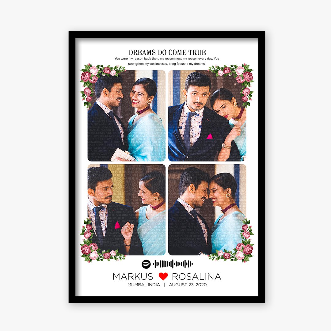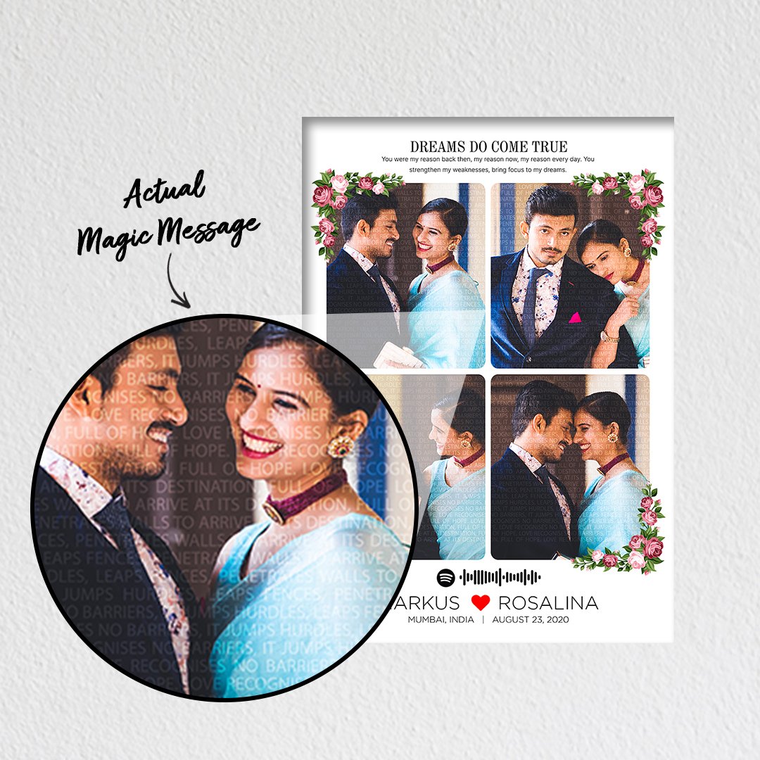 Memory Magic Text Frame customized with hidden message and spotify music frame
